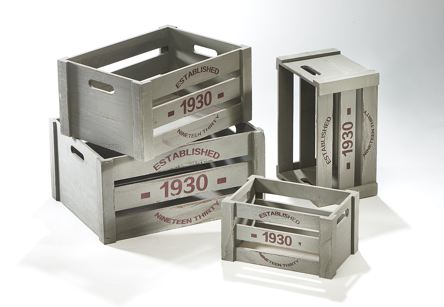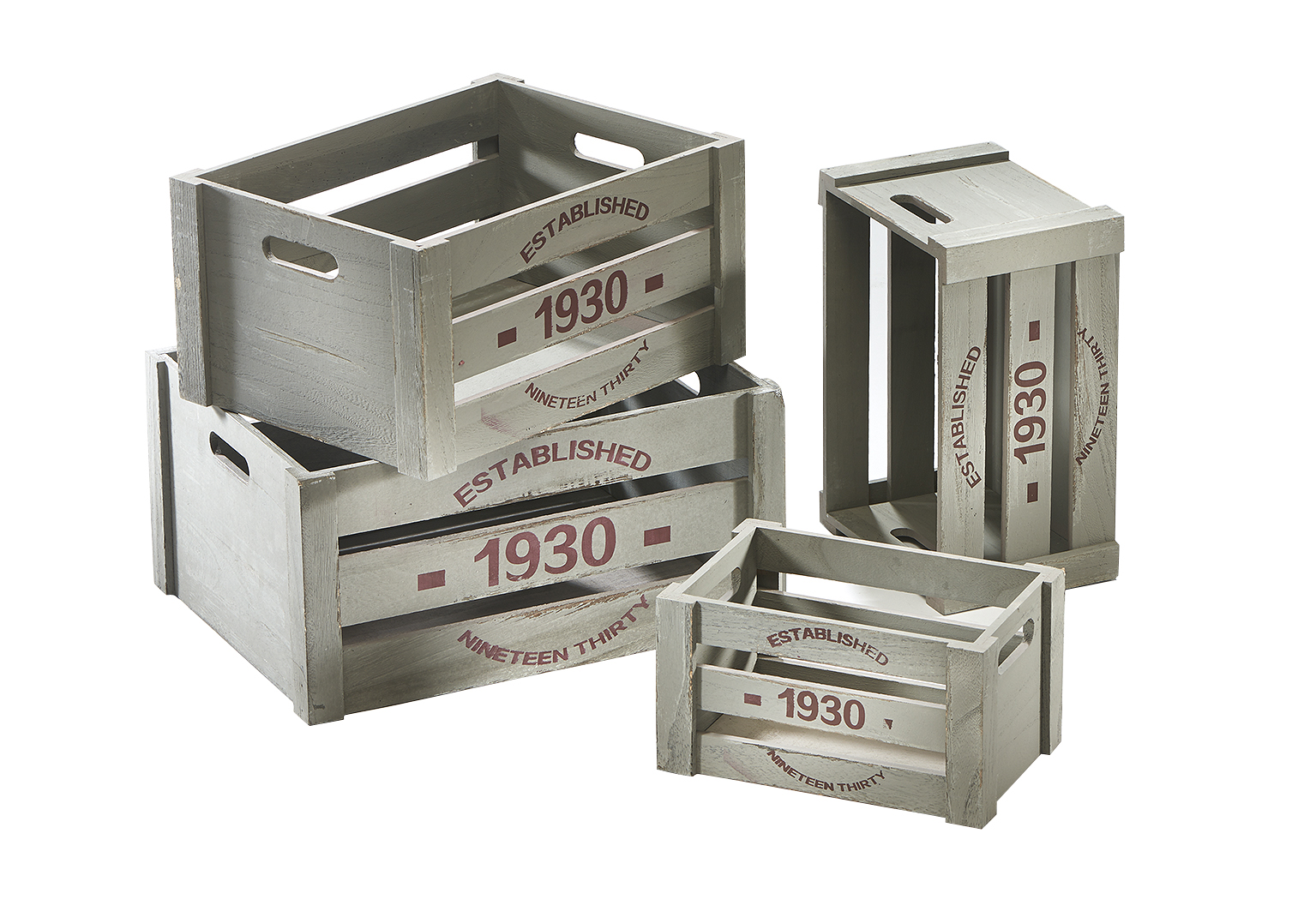 Holzkistenset im Stil einer Weinkiste von Kobolo. Diese vielseitig einsetzbaren Holzkisten sorgen für ein Wohlfühlambiente bei Ihnen Zuhause. Ein Blickfang für Wohnung, Terrasse und Balkon. Maße Ca.Gr1 26cm x 17cm x 14cm , Gr2 31cm x 22cm x 16cm , Gr3 36cm x 27cm x 18cm , Gr4 41cm x 32cm x 20cm