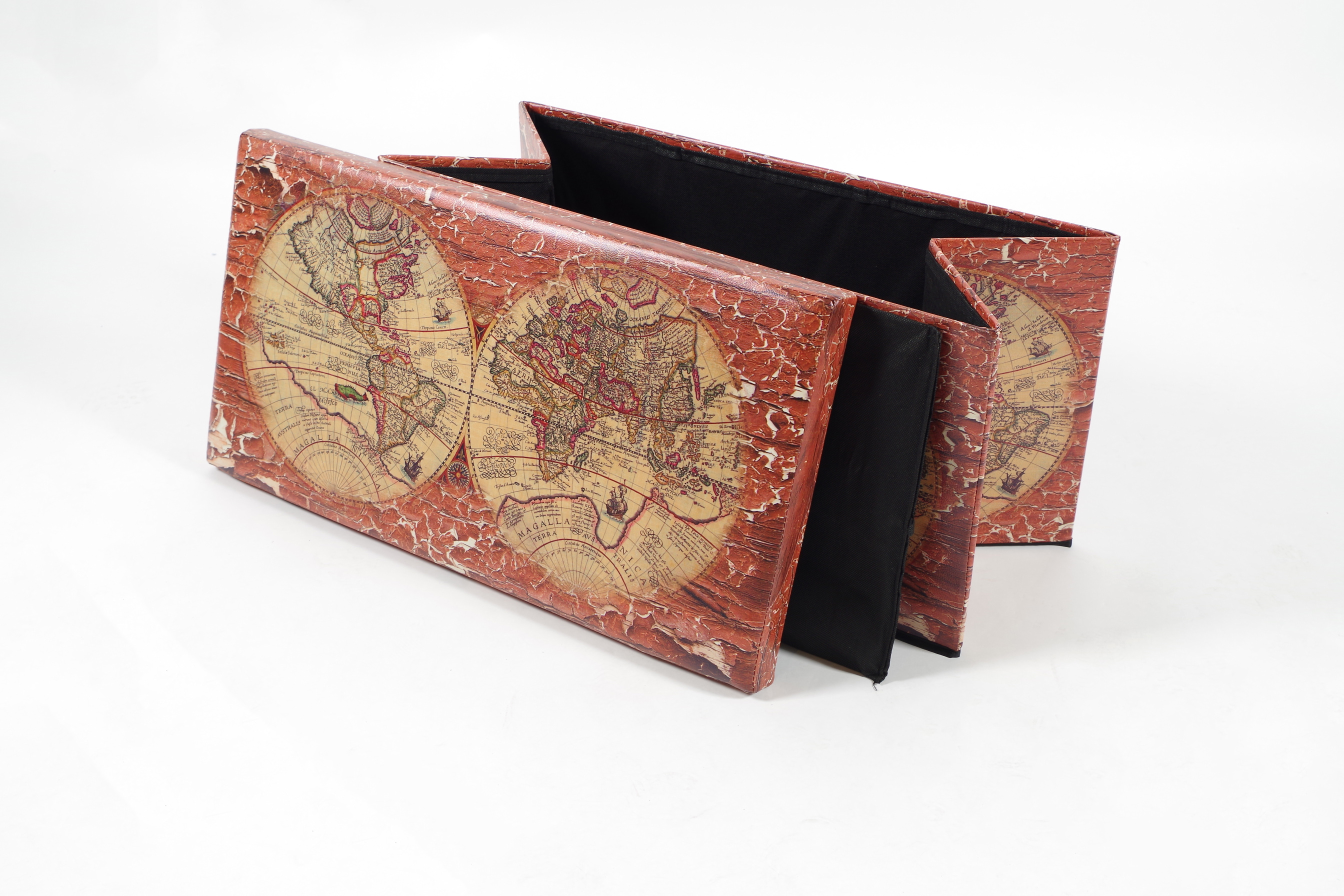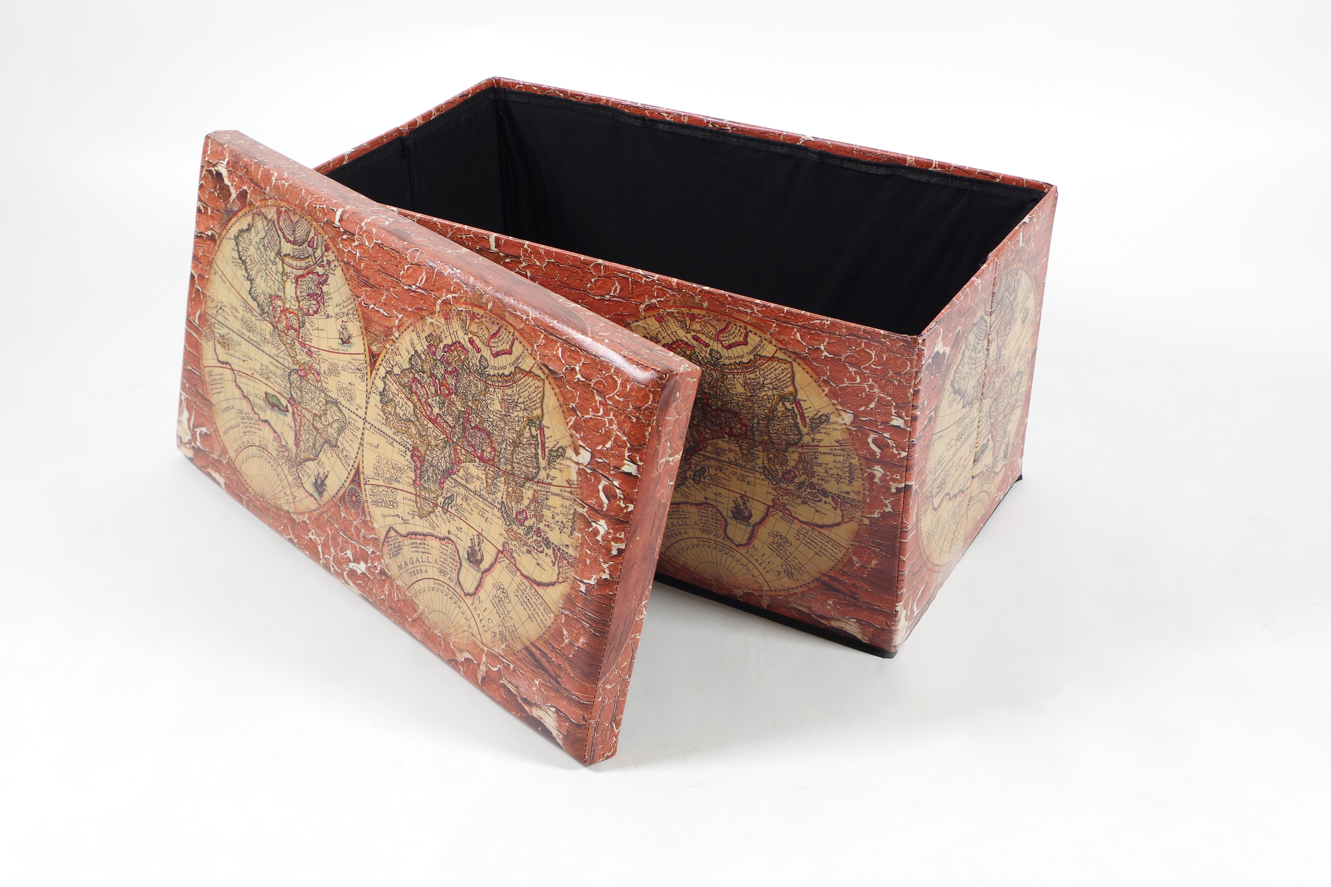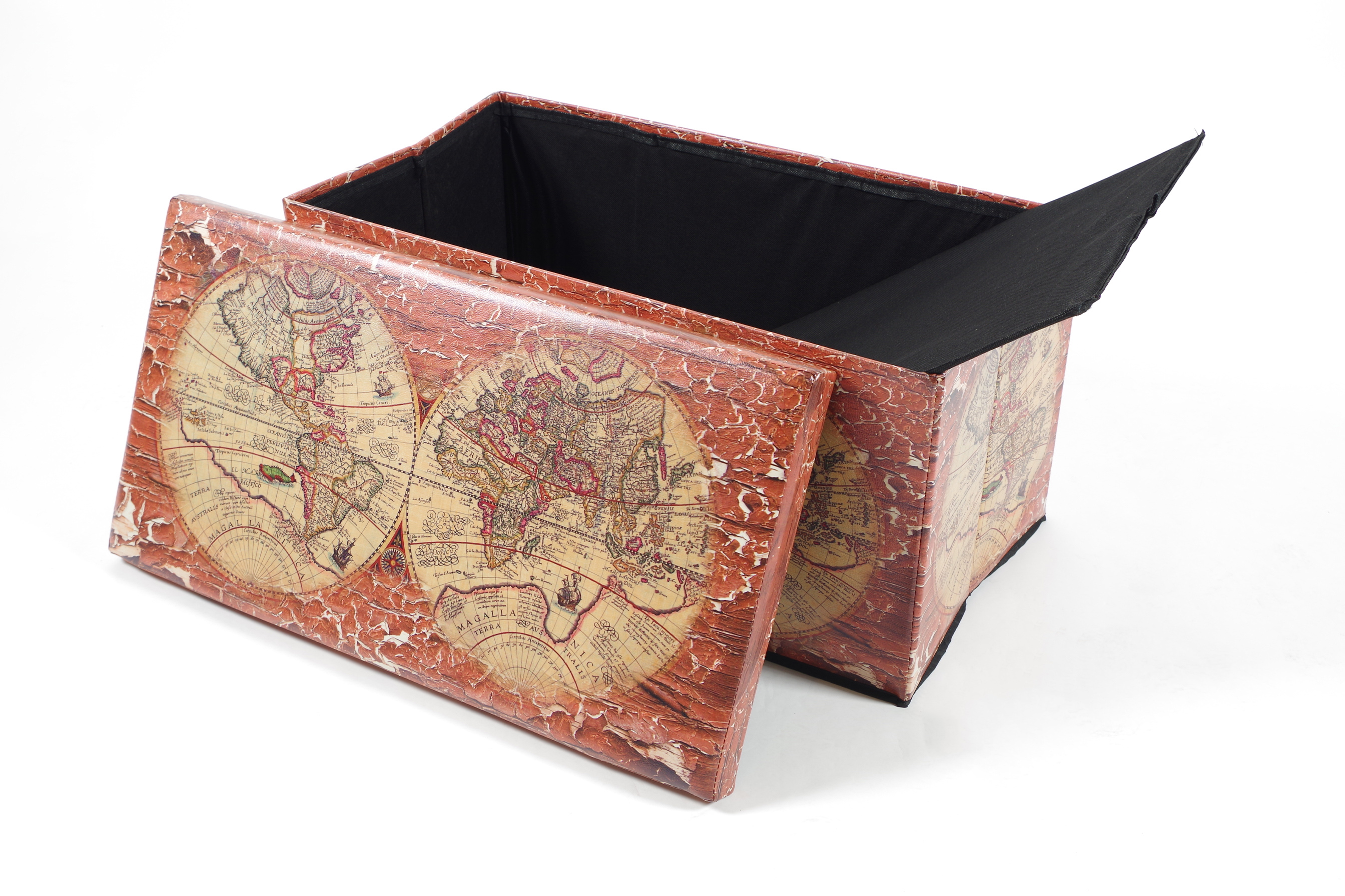 Praktische faltbare Sitztruhe mit trendigem Motiv von Kobolo. Das raffiniert-funktionale Design fügt sich problemlos in viele Einrichtungsstile ein. Die Sitzkiste ist bis 100 kg belstbar und bietet mit ca. 85 L viel Stauraum für Spielsachen, Zeitungen, Decken, Kissen uvm - Einfach Deckel abnehmen als Aufbewahrungsbox nutzen. Bei Nichtgebrauch lässt sich die Sitztruhe schnell zusammenfalten und platzsparend verstauen. Länge 76cm x Breite 40cm x Höhe 40cm