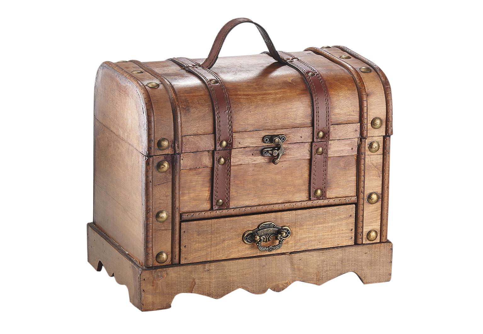 HOCHWERTIGES HOLZDESIGN - Dle Holztruhe im Schatztruhendesign von Kobolo ohne Deko. BESTECHENDE VERZIERUNGEN - diese schöne Holztruhe besticht durch Zierverschlüsse, Schnallen und Applikationen, die den Antik-Look unterstreichen. PRAKTISCHE AUFBEWAHRUNG - eine kleine Schublade rundet das Design ab und bietet Stauraum für verschiedenste Dinge. DEKOSTÜCK FÜR JEDEN ANLASS – Ideal auch als Geschenk -ein echter Hingucker. Länge 31cm x Breite 20cm x Höhe 26cm
