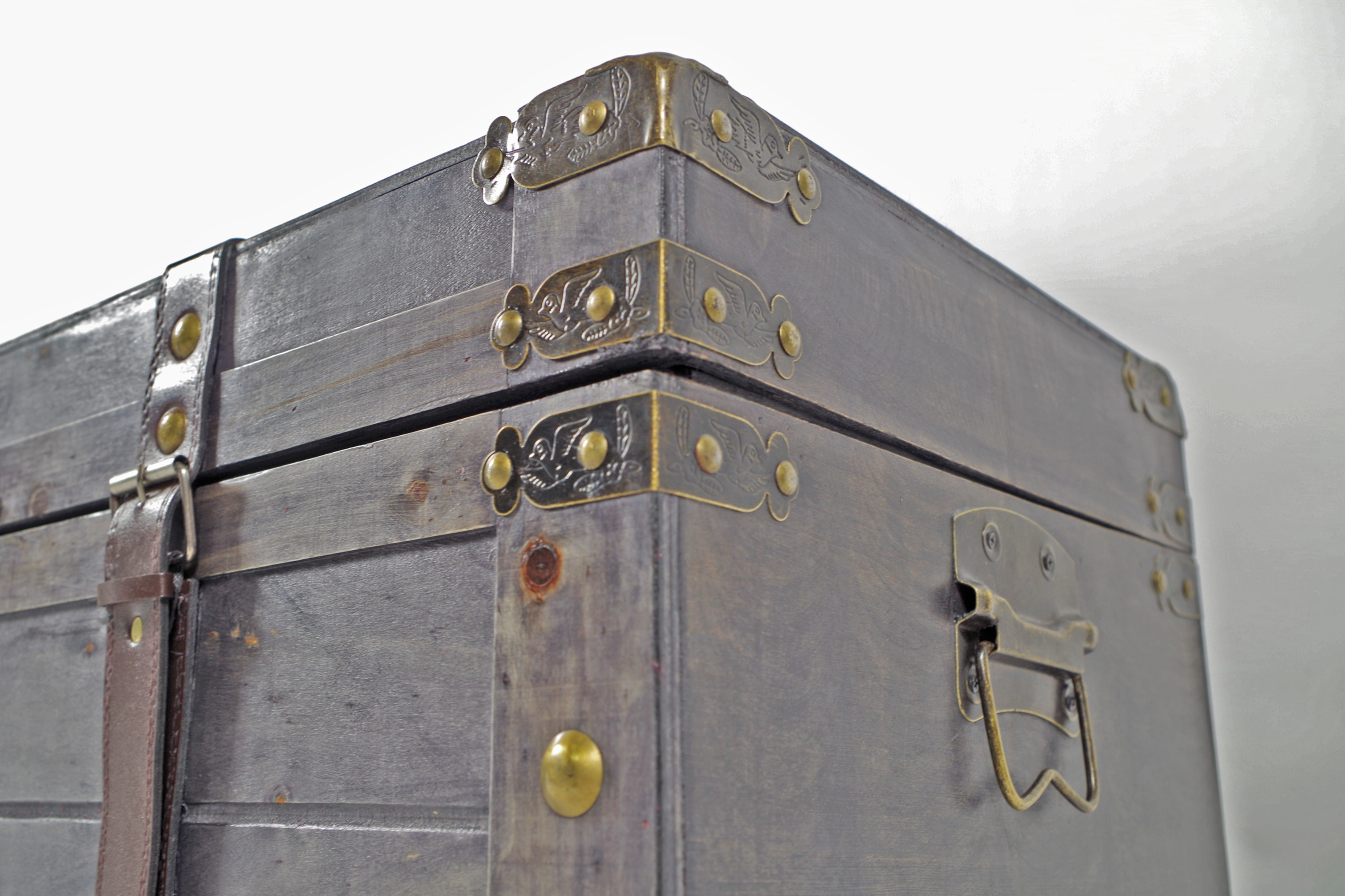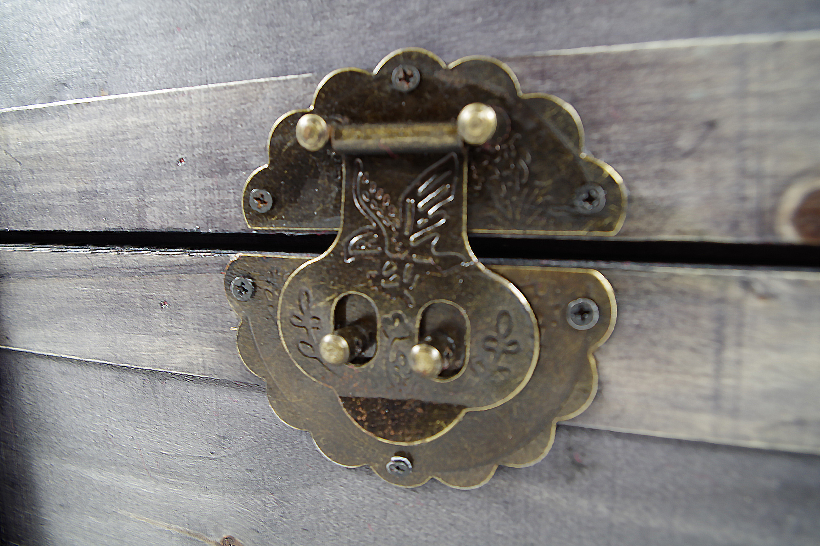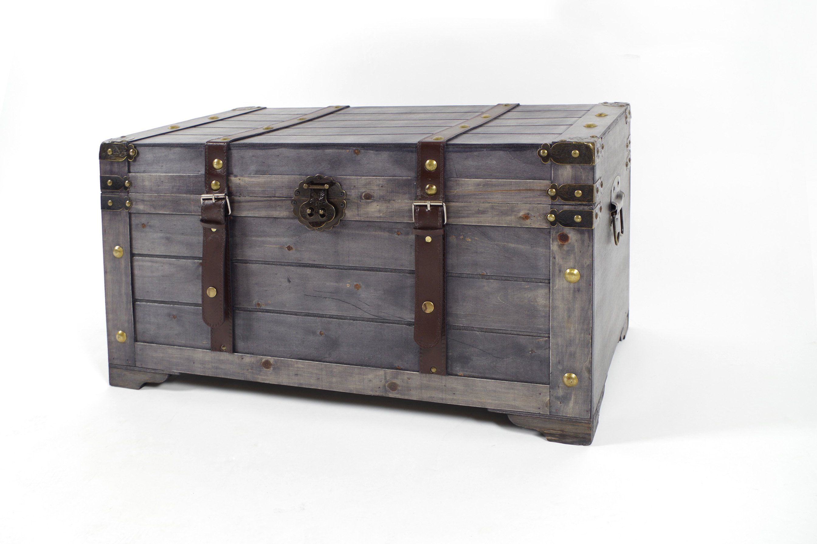 Edle Holztruhe im Schatztruhendesign von Kobolo. Diese schöne Holztruhe besticht durch Zierverschlüsse, Schnallen und Applikationen, die den Antik-Look unterstreichen. Außerdem bietet die Truhe Stauraum für verschiedenste Dinge. Material: Sperrholz Länge 70cm x Breite 35cm x Höhe 38cm