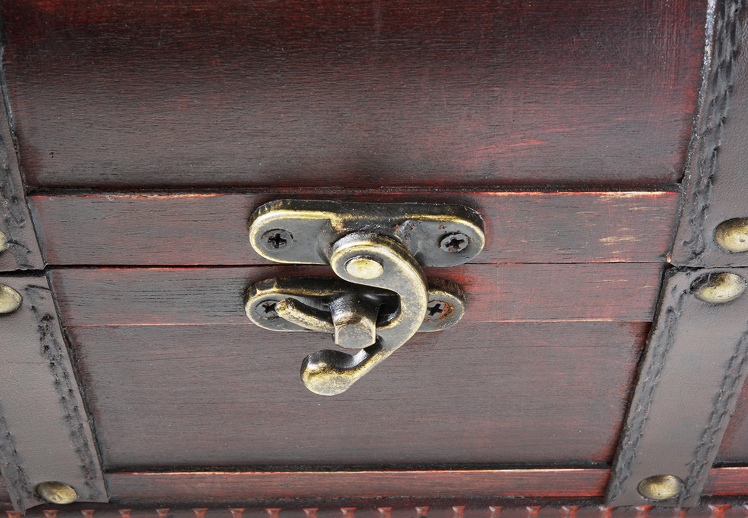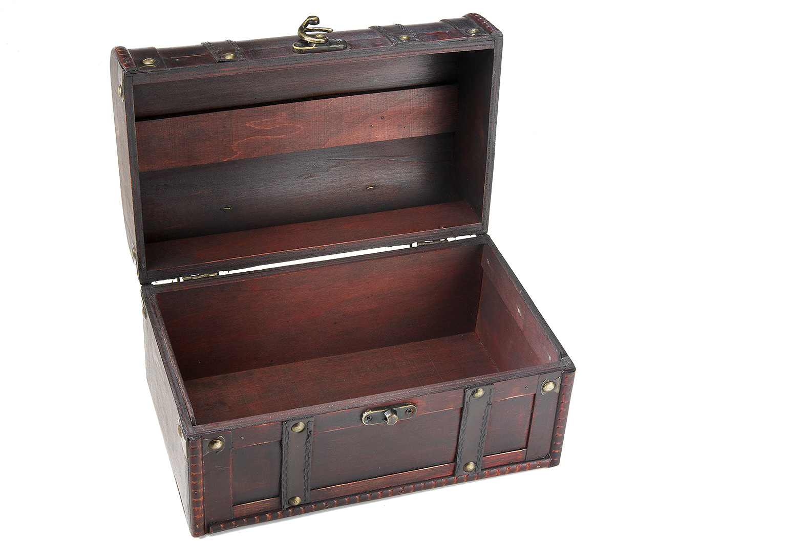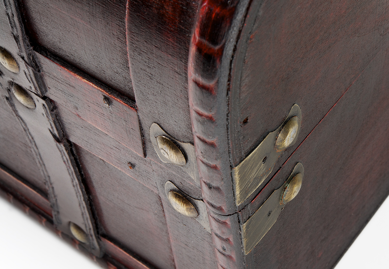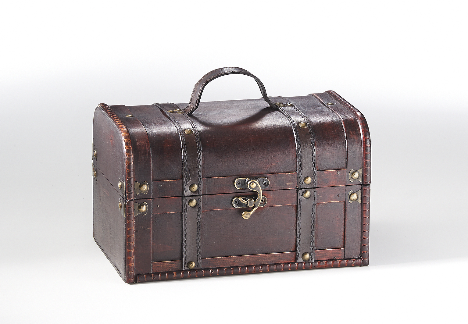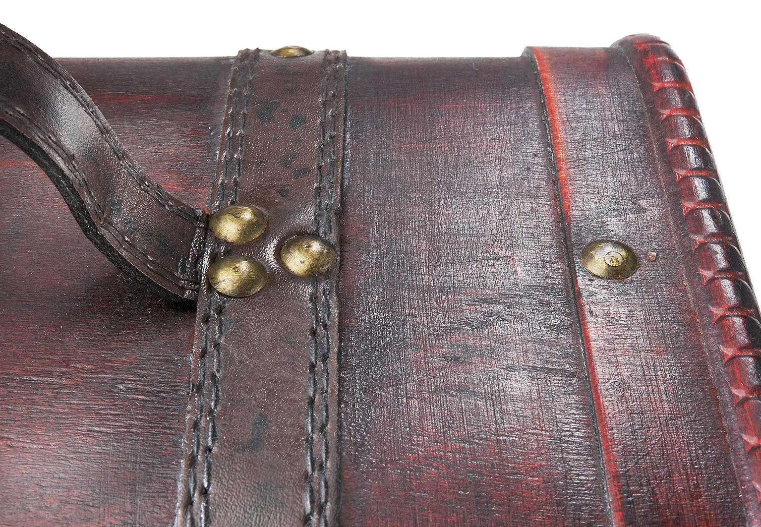 Edle Holztruhe im Schatztruhendesign von Kobolo. Diese schöne Holztruhe besticht durch Zierverschlüsse, Schnallen und Applikationen, die den Antik-Look unterstreichen. Außerdem bietet die Truhe Stauraum für verschiedenste Dinge. Auch als Geschenk ein echter Hit. Länge 26cm x Breite 16cm x Höhe 16cm