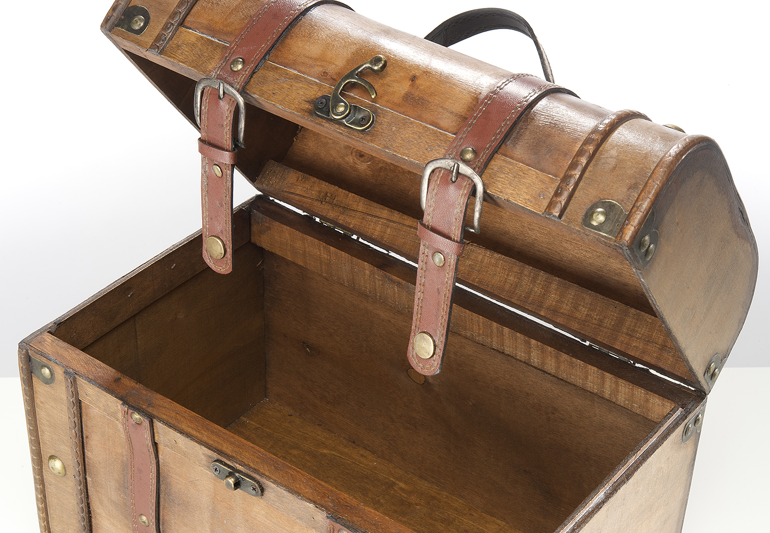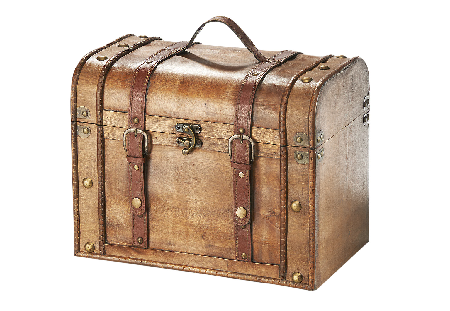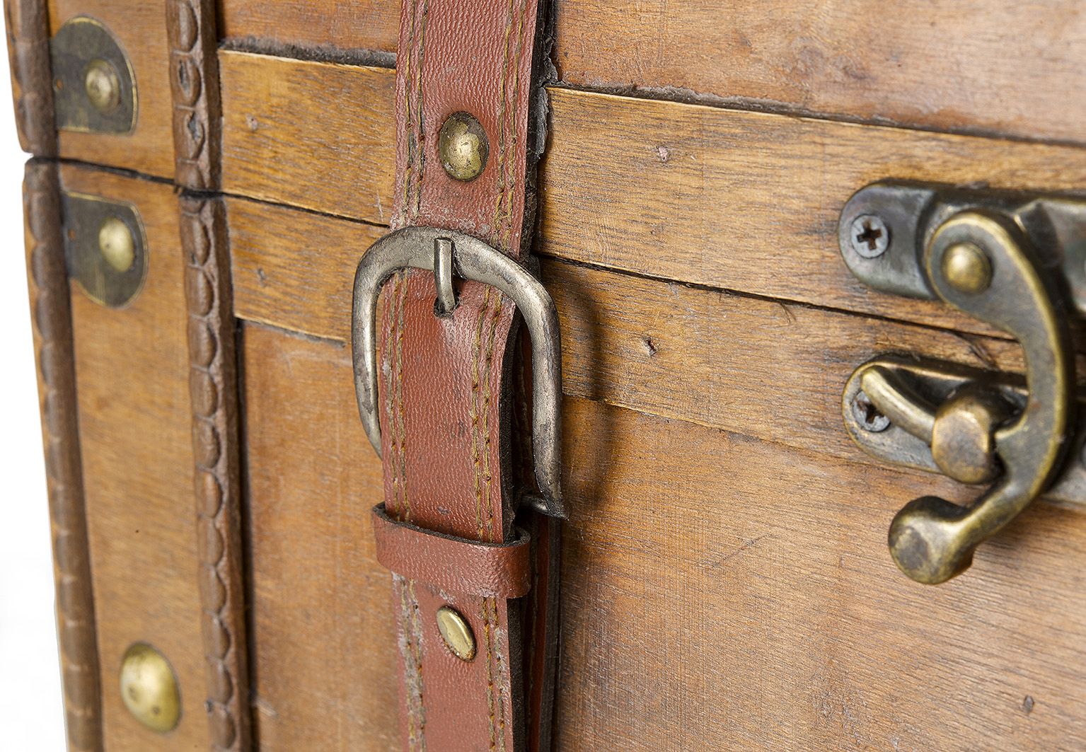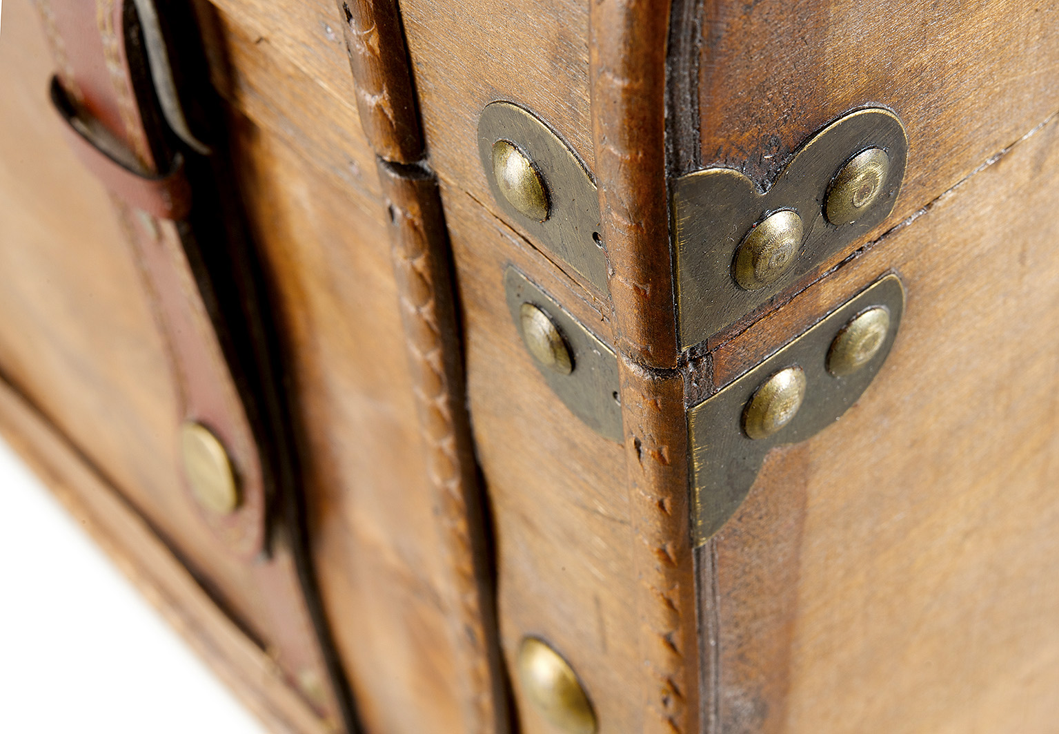 Edle Holztruhe im Schatztruhendesign von Kobolo. Diese schöne Holztruhe besticht durch Zierverschlüsse, Schnallen und Applikationen, die den Antik-Look unterstreichen. Außerdem bietet die Truhe Stauraum für verschiedenste Dinge. Auch als Geschenk ein echter Hingucker. Länge 36cm x Breite 23cm x Höhe 29cm