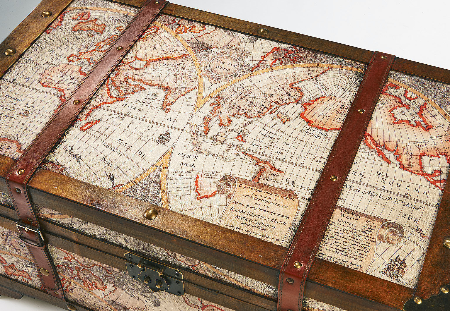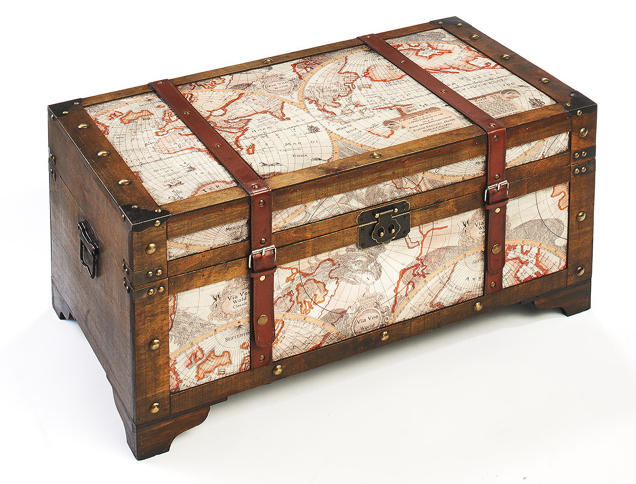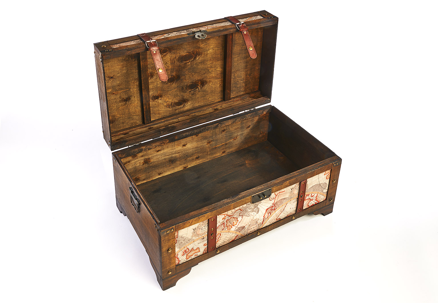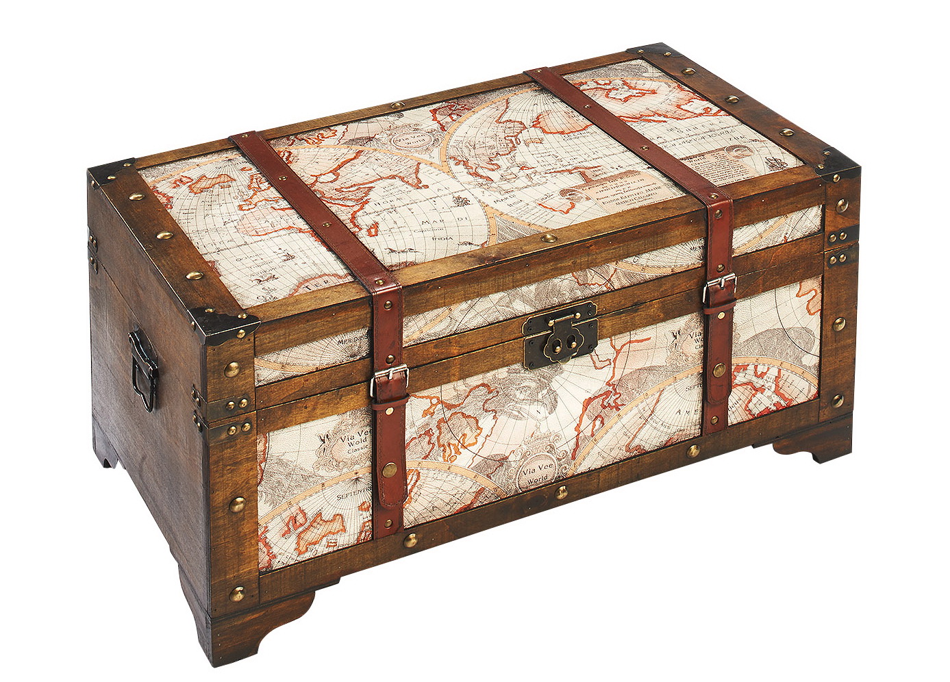 NOSTALGISCHES DESIGN - Die Piraten- Schatztruhe von Kobolo wird durch Ihre aufwendige Bedruckung im Weltkarten-Design zum Highlight in jedem Ambiente. FORMSCHÖNE VERZIERUNG - Die Holztruhe besticht durch Zierverschlüsse, Schnallen und Applikationen, die den Antik-Look unterstreichen. PERFEKT VERSTAUT - Durch Ihre großzügigen Maße bietet Sie Stauraum für verschiedenste Dinge. Länge 70cm x Breite 40cm x Höhe 35cm