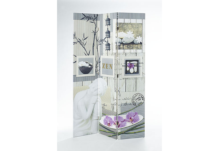 Der 3-teilige Paravent von Kobolo besteht aus einem Holzrahmen, der mit einem Canvasüberzug bespannt ist. Beidseitig in gedeckten Farben mit verschiedenen beruhigenden Motive bedruckt, verleiht die Dekowand jedem Raum eine harmonische Atmosphäre. Der Paravent besteht aus 3 Teilen, die mit Scharnieren verbunden sind. Jedes Teil ist 40 cm breit und 180 cm hoch. Länge 120cm x Breite 2cm x Höhe 180cm