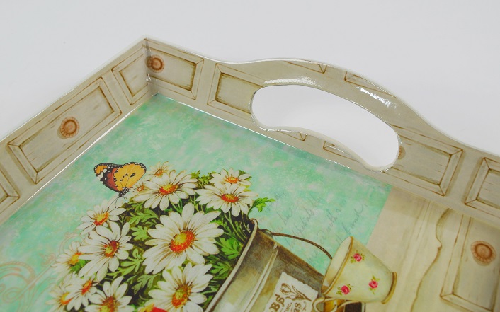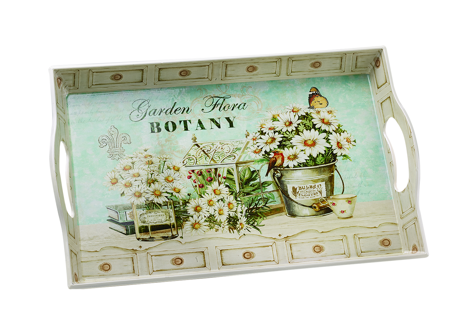 Tablett eckig, mit Tragegriffen und Blumendekor