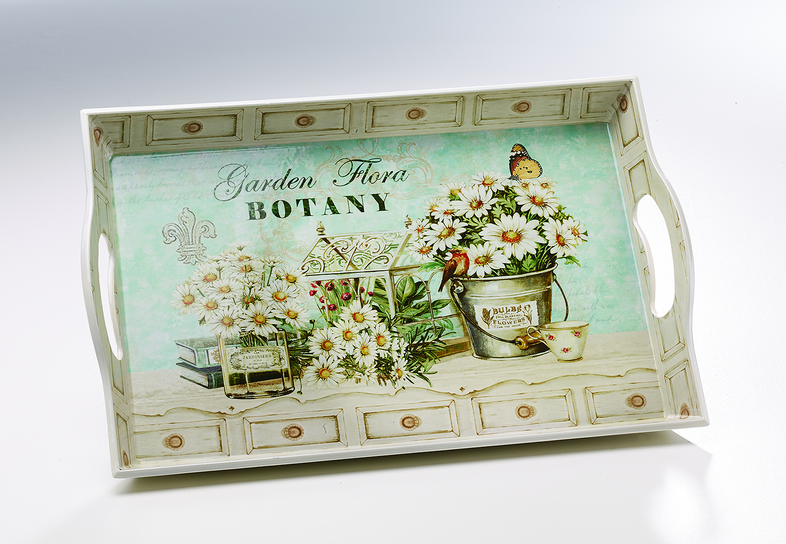 Stabiles Tablett mit nostalgischen Druck von Kobolo. Die Oberfläche des Tabletts wurde mit einem nostalgischen Bilderdruck verziert. Ein super Blickfang der sich als Deko und zum Servieren anbietet. Länge 40cm x Breite 27cm x Höhe 4cm