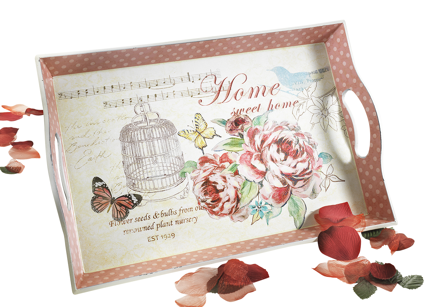 Stabiles Tablett mit nostalgischen Druck von Kobolo. Die Oberfläche des Tabletts wurde mit einem nostalgischen Bilderdruck verziert. Ein super Blickfang der sich als Deko und zum Servieren anbietet. Länge 40cm x Breite 27cm x Höhe 4cm