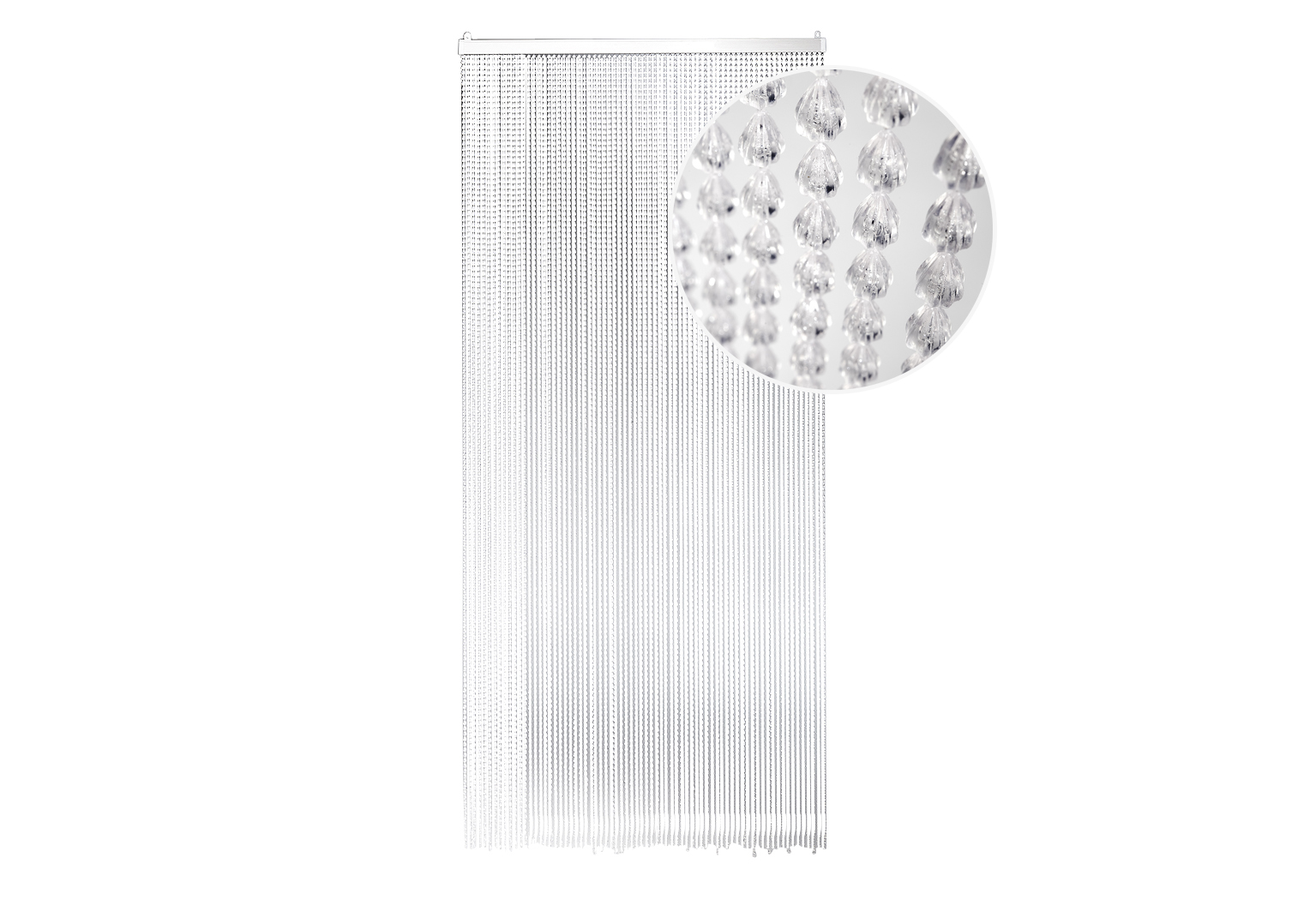 Moderner Türvorhang DROPS mit 72 Strängen von Kobolo. Ein altbewährter Schutz gegen Insekten mit zusätzlichem Dekoeffekt. Ein Hingucker für jede Tür und schöner Schutz, der den Großteil der Insekten abhält. Die Befestigung erfolgt über zwei in der Kopfleiste verschiebbare Ösen. Länge 0cm x Breite 90cm x Höhe 200cm