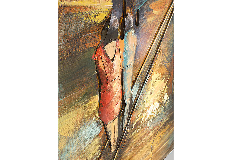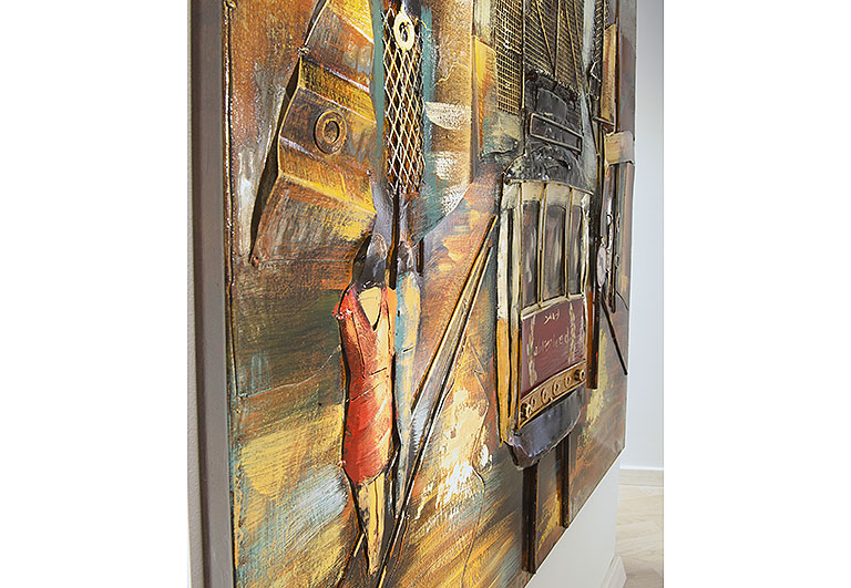 Das quadratische Metallbild von Kobolo besticht durch seine gelungene Kombination verschiedener Erdtöne und fügt sich harmonisch in jedes Ambiente ein. Das Highlight dieses Wandbildes aus Metall ist das 3D Relief einer Strassenbahn. Ohne Dekotasche. Länge 100cm x Breite 5cm x Höhe 100cm