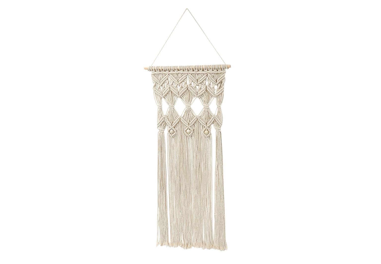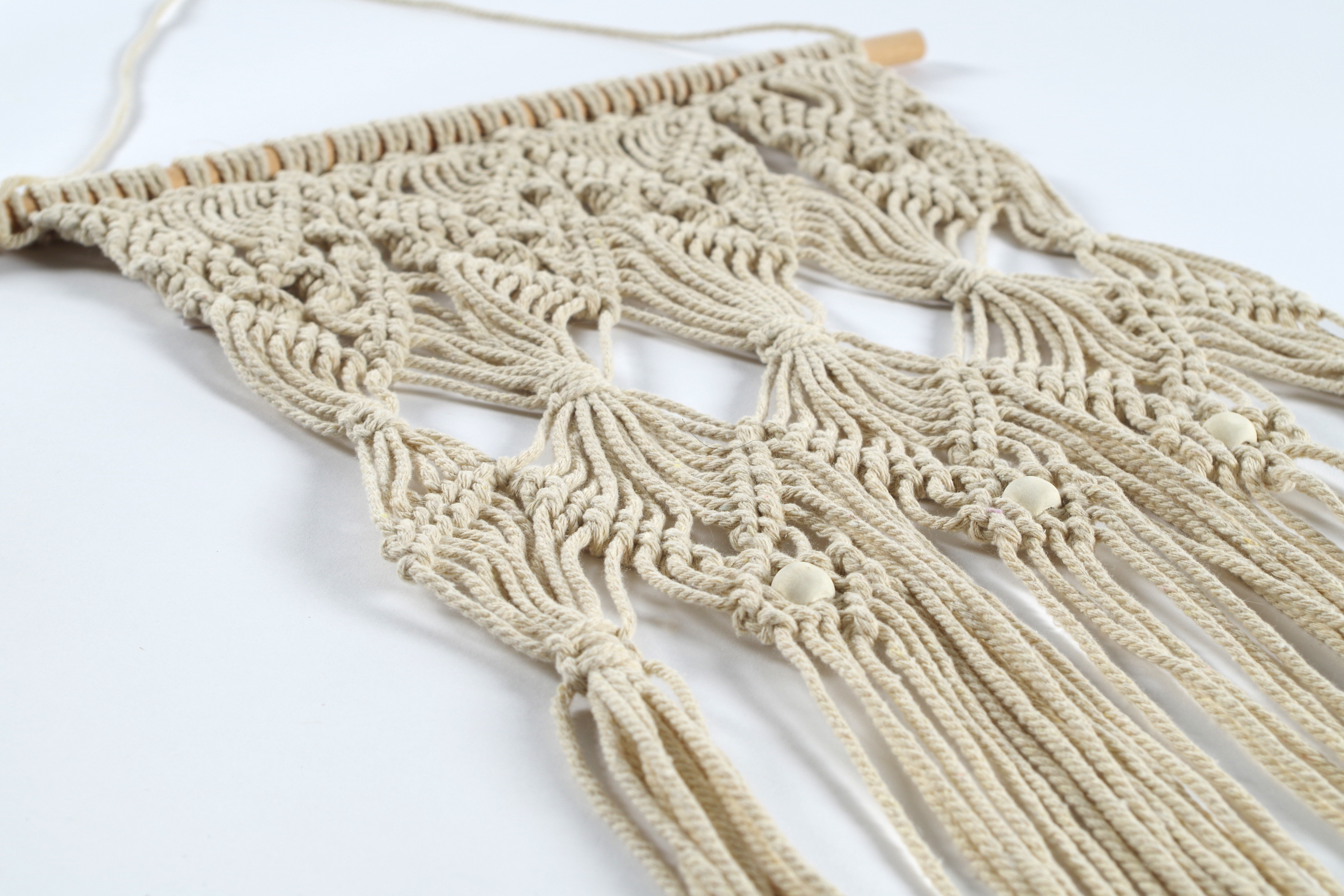 Filigraner Wandbehang aus reiner Baumwolle von Kobolo. Der neuste Trend Makramee Wandbehang in seiner natürlichsten Ausführung. Verschönert Ihr Zuhause auf ganz besondere Weise. Der bewährte Dekohelfer wird Ihnen viel Freude bereiten. Länge 0cm x Breite 35cm x Höhe 70cm