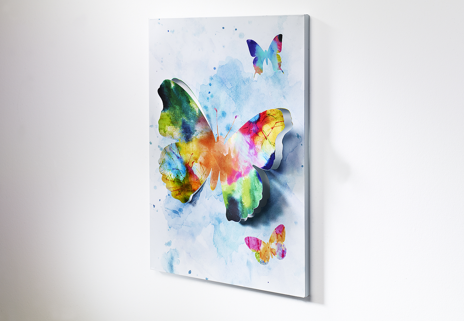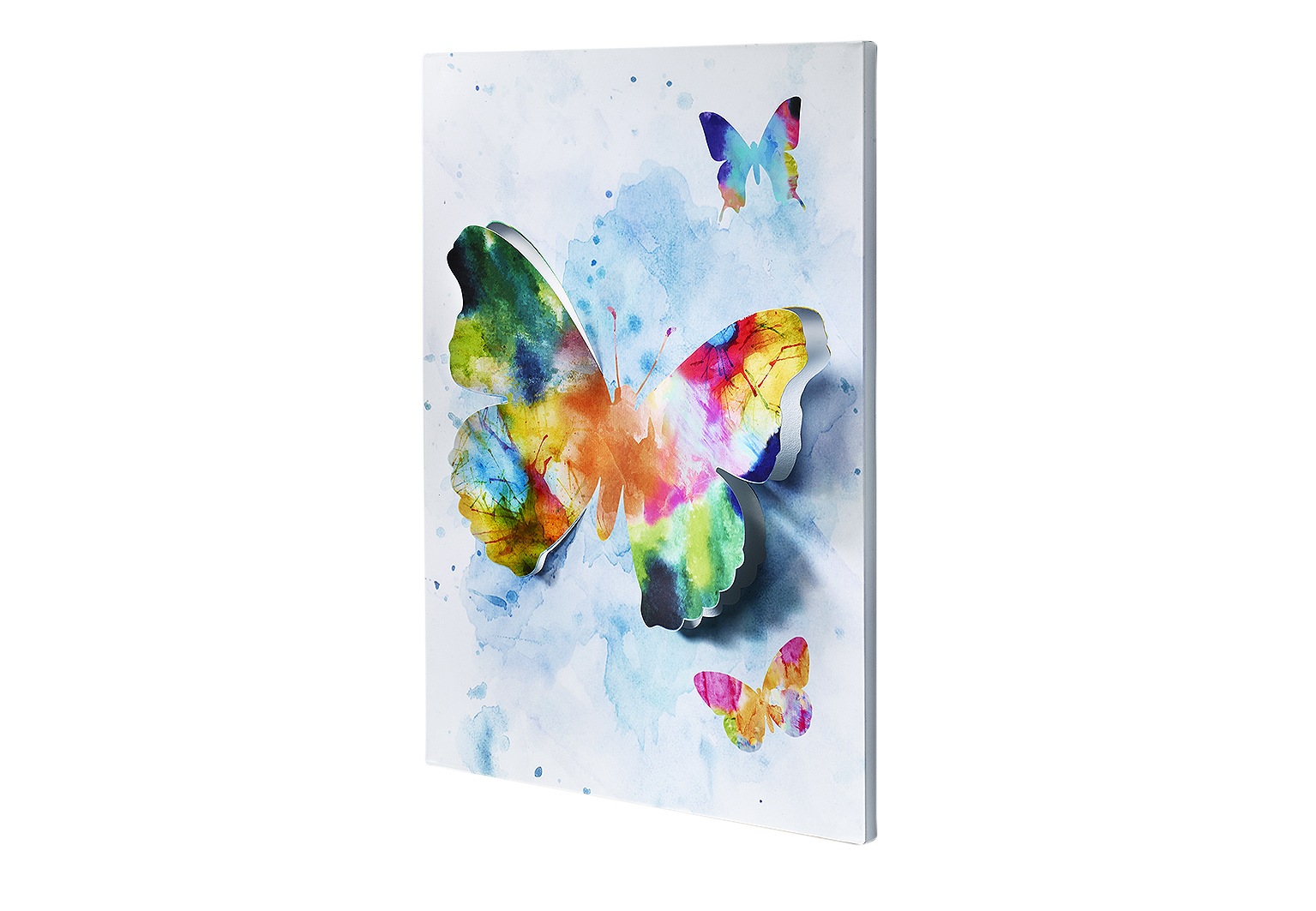 Das rechteckige Wandbild aus Metall von Kobolo besticht durch präzise Verarbeitung und formschönes Design. Mit kleinen Schmetterlingen ganz in fröhlichen Aquarelltönen gehalten verleiht es jedem Zuhause eine frische und ausgeglichenen Atmosphäre. Besonderer Clou ist der große, aufgesetzte Schmetterling in 3D, der dem Metallbild eine lebendige und individuelle Note verleiht. Länge 46cm x Breite 2cm x Höhe 64cm