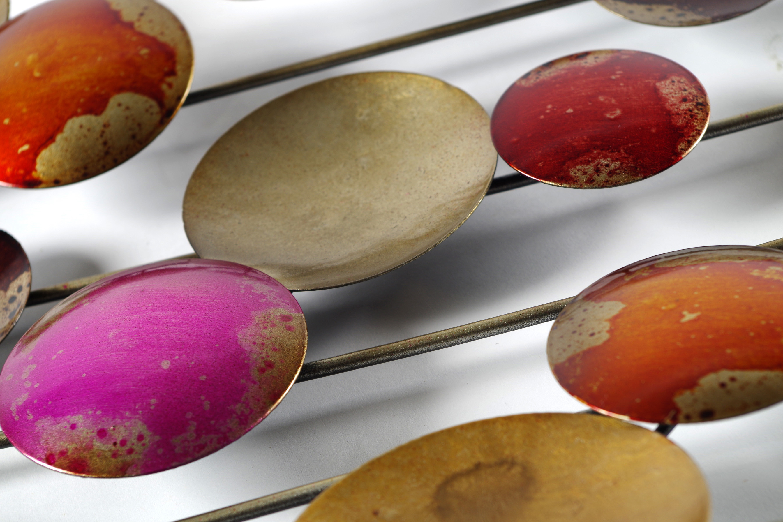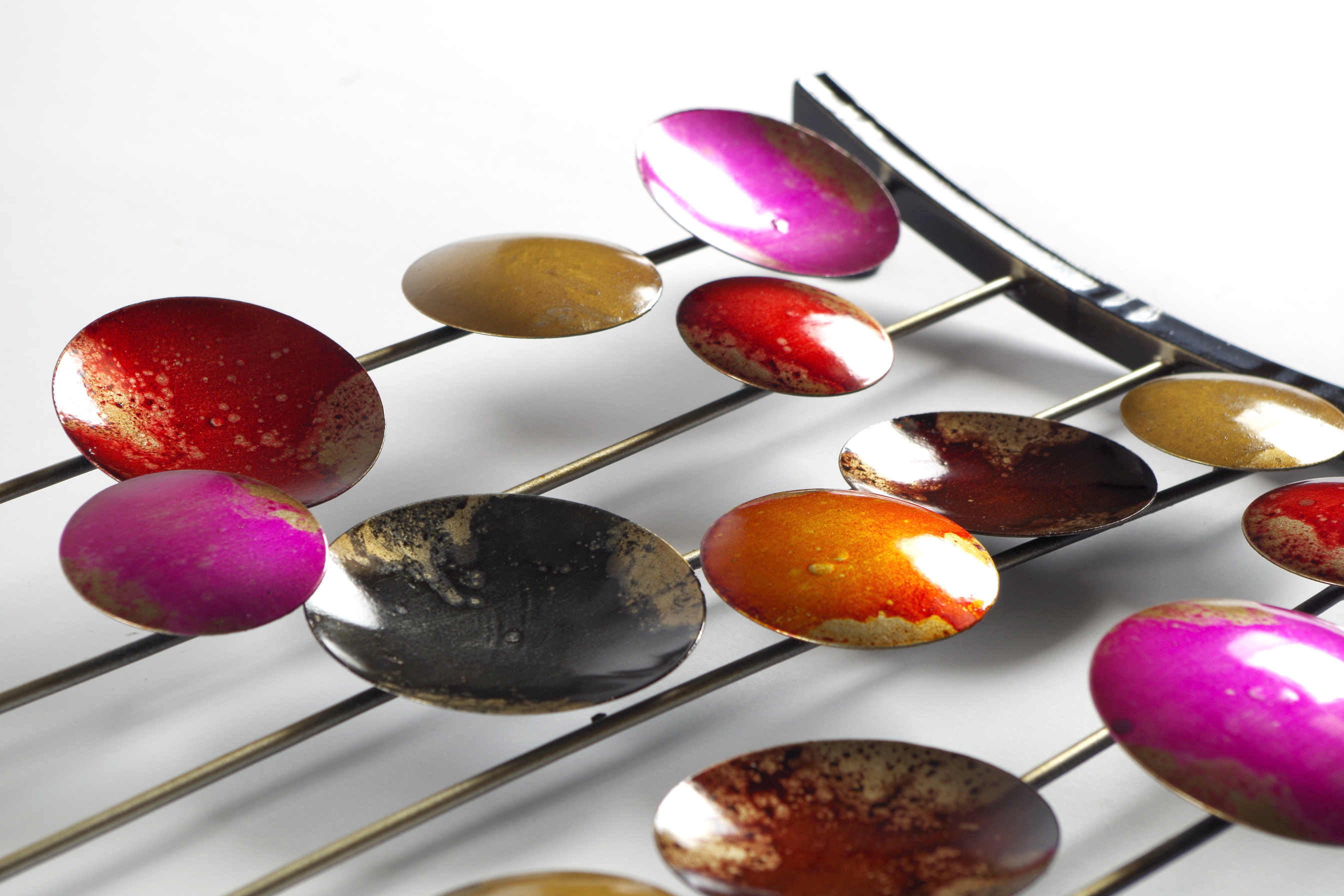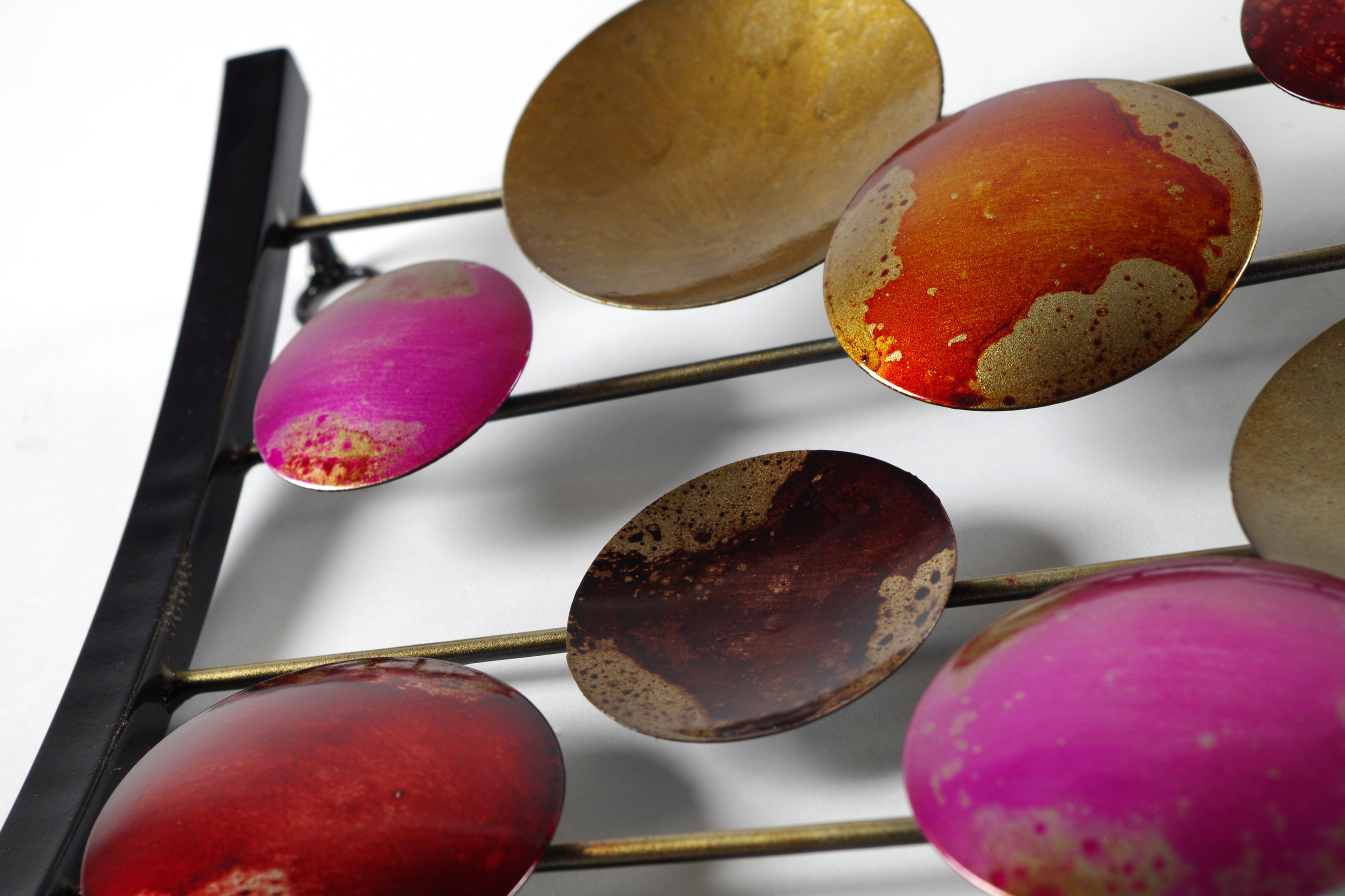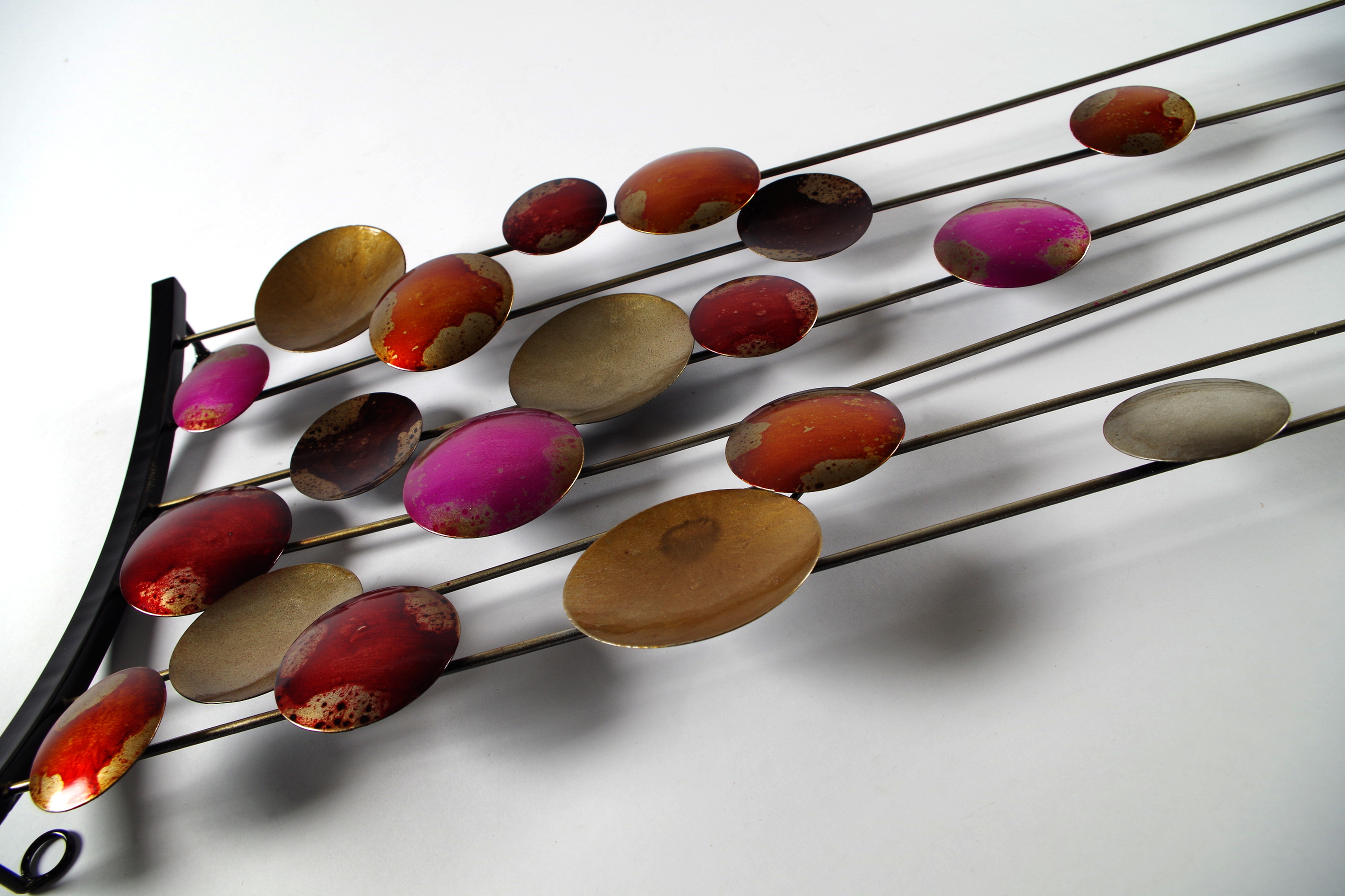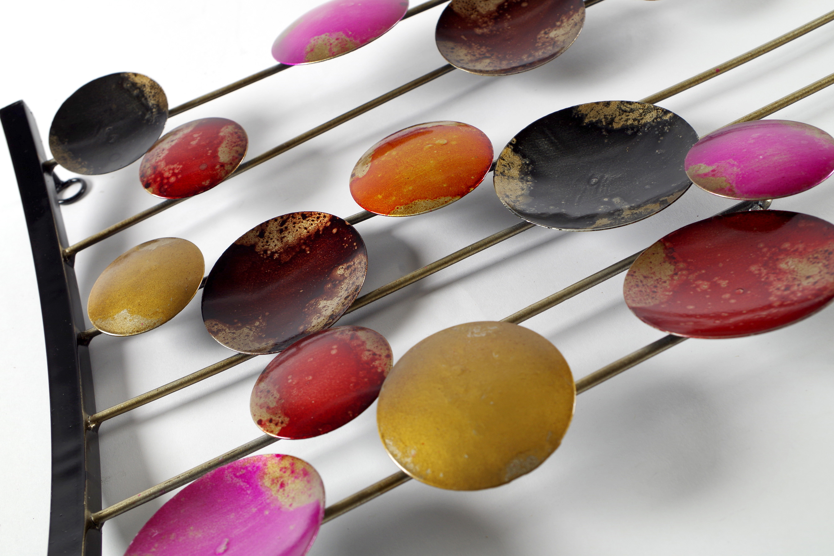 Raffiniertes Wandbild aus Metall von Koboloin Rottönen. Diese wunderschöne Wanddekoration ist ein echter "Hingucker" der Ihrem Wohnraum zusätzlich einen Touch von edlem Design verleiht. Auch als Geschenk ein Highlight. Länge 90cm x Breite 31cm x Höhe 5cm