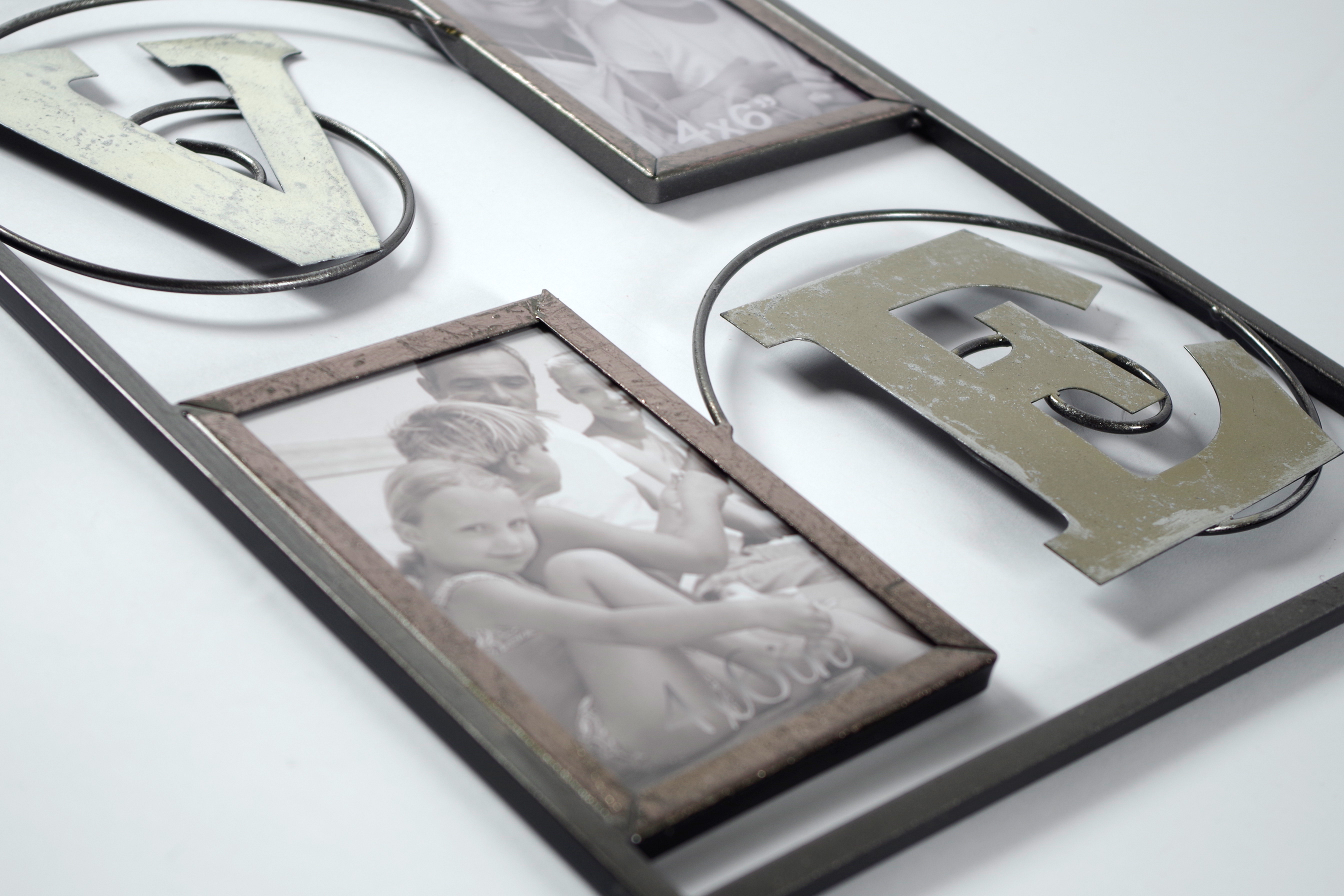 Die rechteckige Wanddekoration von Kobolo überzeugt durch präzise Verarbeitung und formschönes Design. Die Bilderhalter verleihen dieser Wanddekroration zusätzlich ihre individuelle Note. Die Rahmen bieten Platz für 4 Bilder im Format 10 x 15 cm. Länge 29cm x Breite 1cm x Höhe 74cm