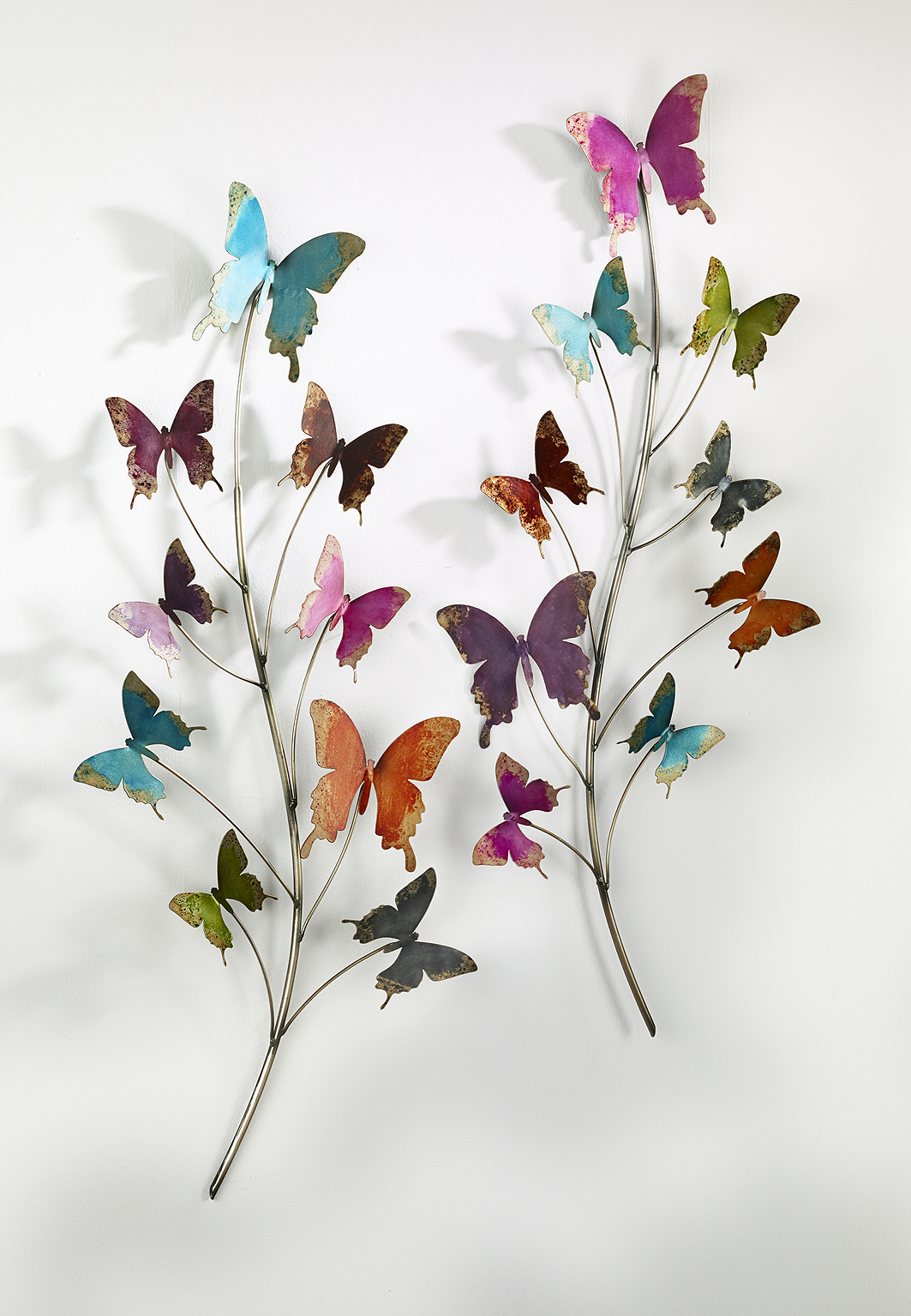 Wanddekoration Schmetterlinge bunt aus Metall 2-fach sortiert