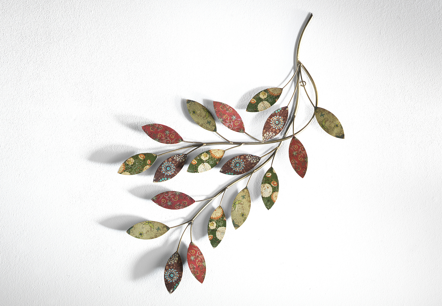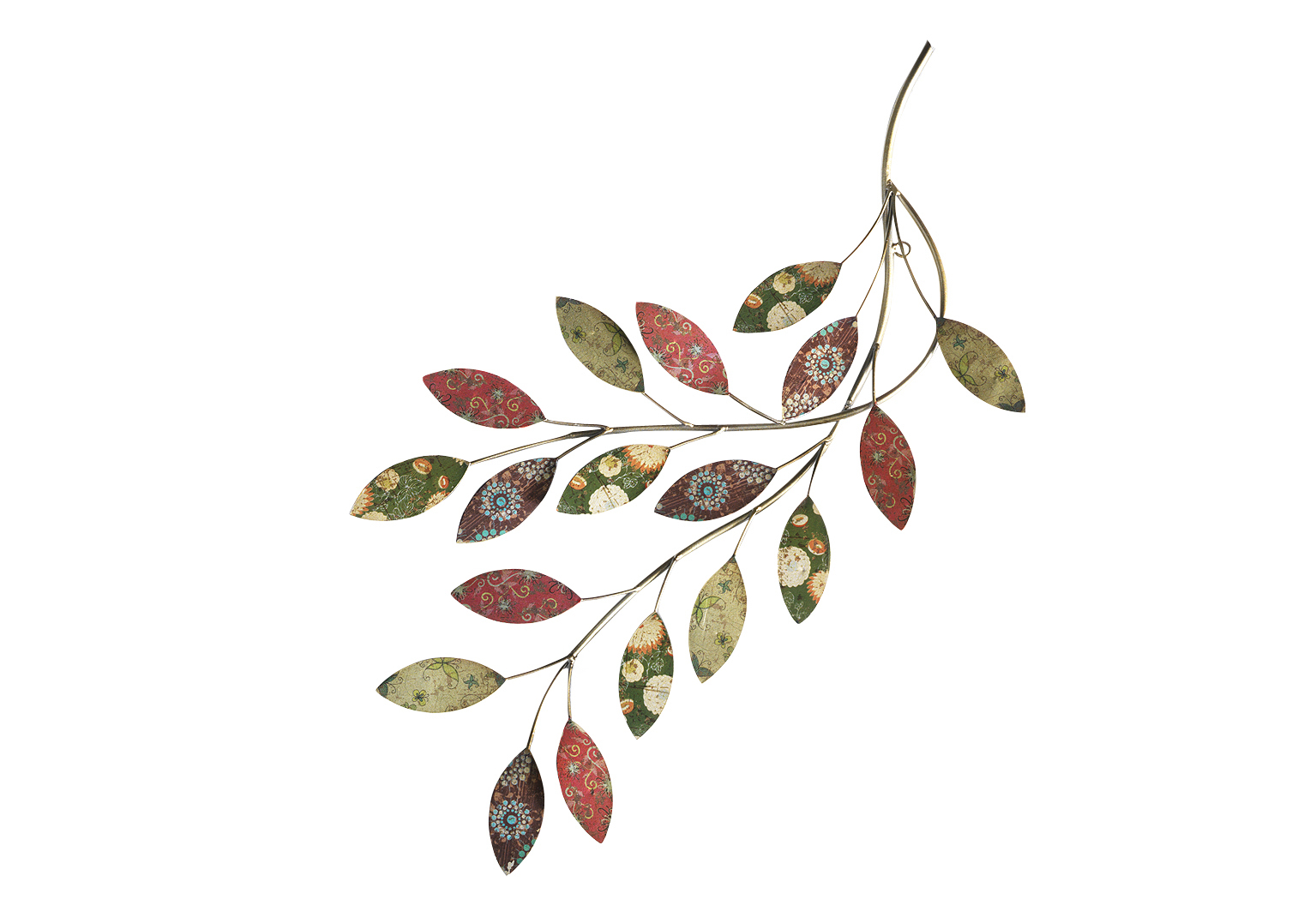 Wanddekoration Zweig aus Metall mit bunten Blättern