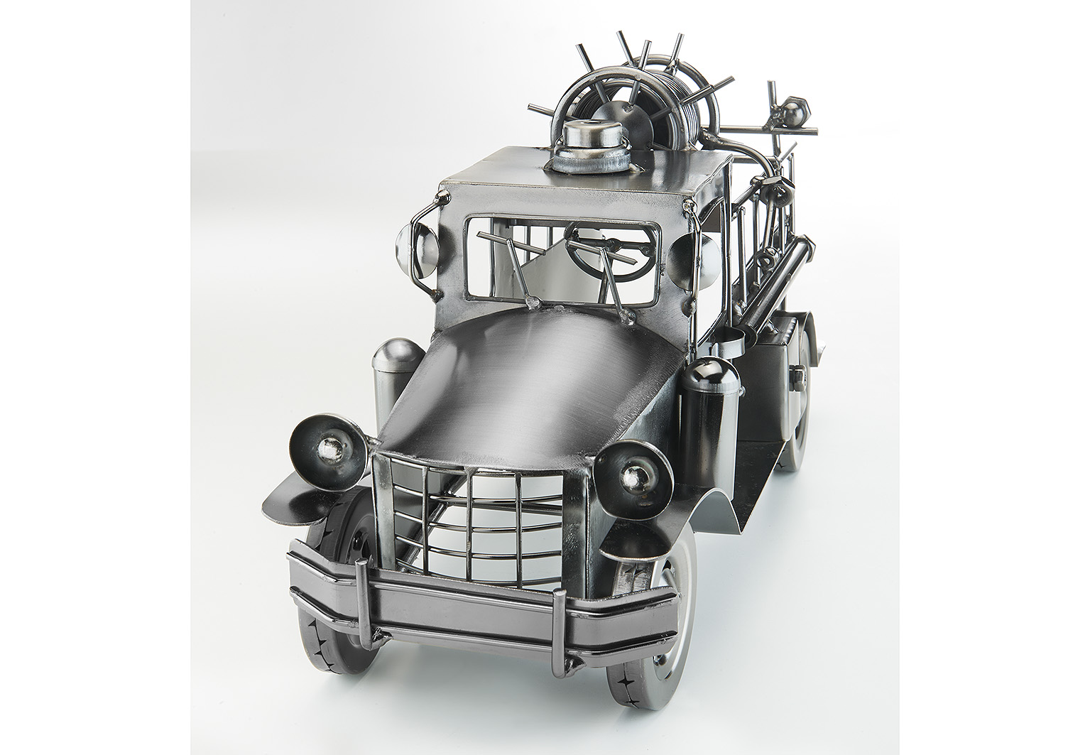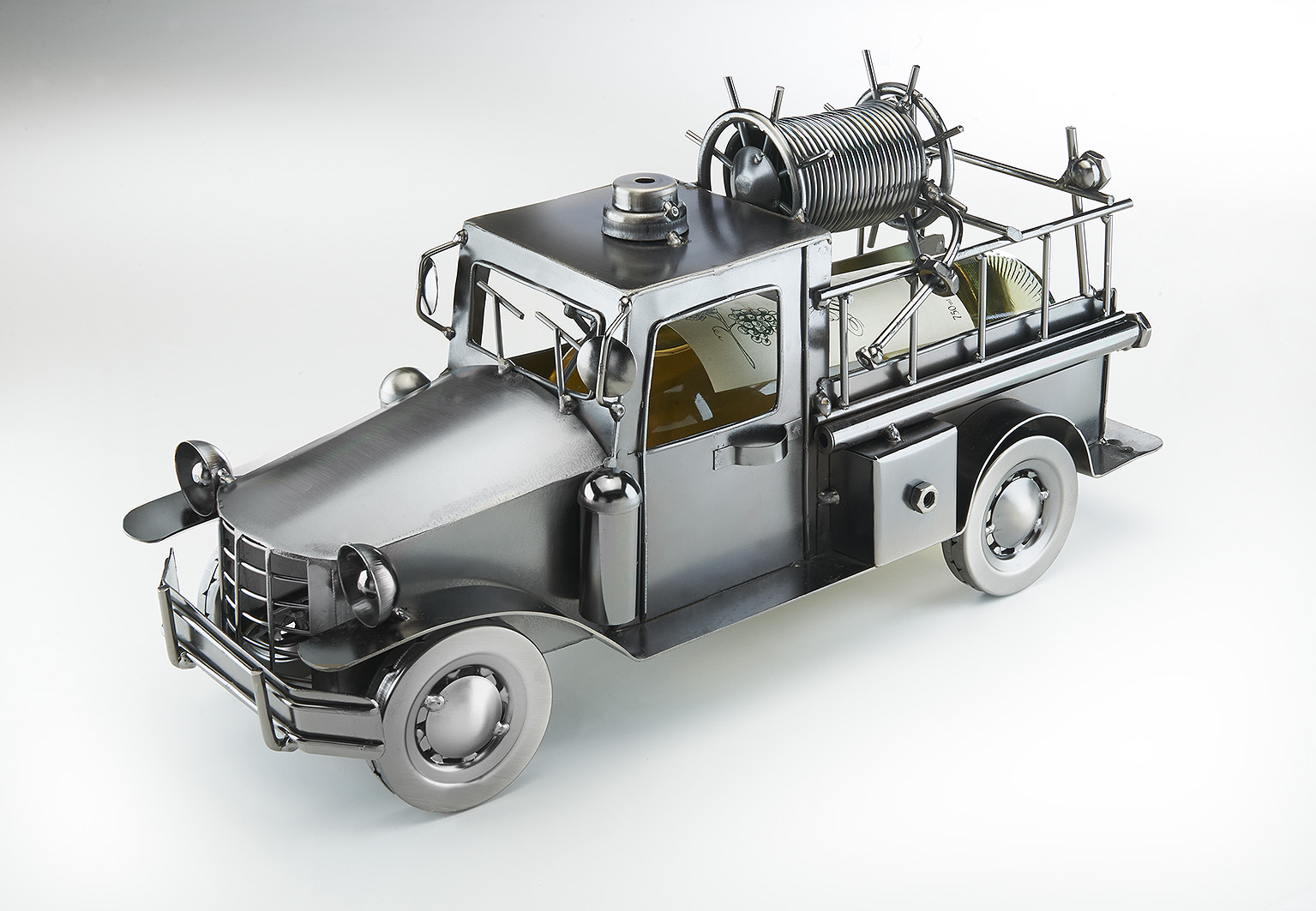 Der Flaschenhalter aus Metall von Kobolo ist detailreich und präzise gearbeitet. In Form eines Feuerwehrautos ist der metallene Halter für Flaschen aller Art als Geschenk oder für die eigene Dekoration ideal. Wird ohne Deko (Flasche) geliefert. Länge 38cm x Breite 13cm x Höhe 20cm