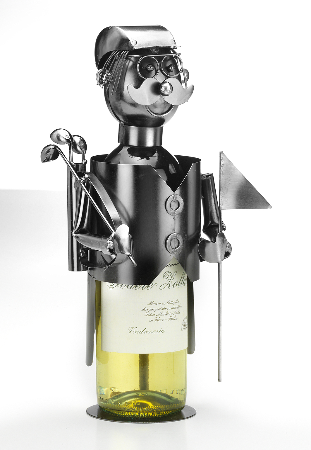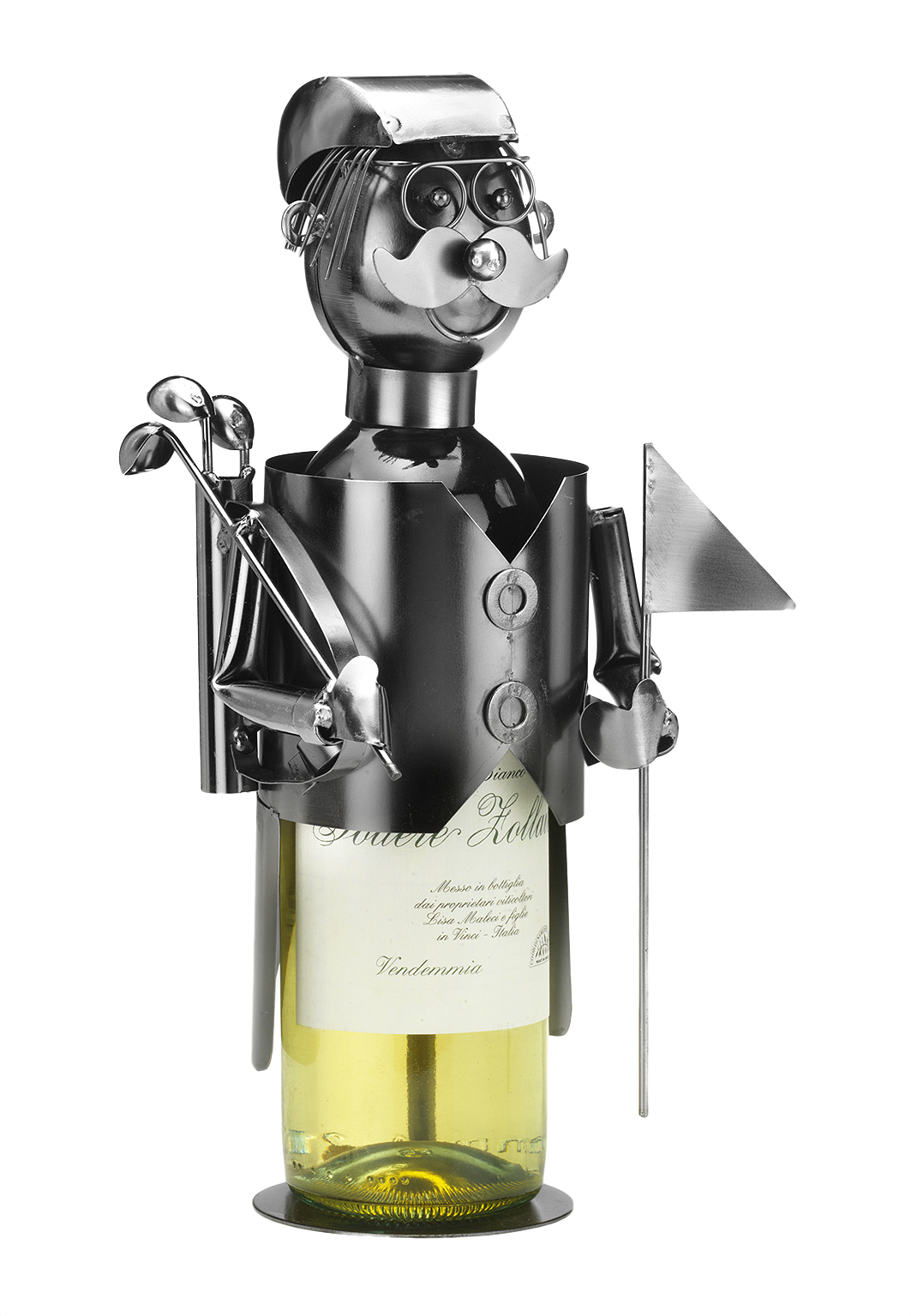 Der Flaschenhalter aus Metall von Kobolo ist detailreich und präzise gearbeitet. In Form eines Golfers ist der metallene Halter für Flaschen aller Art als Geschenk oder für Ihre eigene Dekoration ideal geeignet. Der Innendurchmesser beträgt 8,5 cm. Ohne Deko.Durchmesser 8cm x Höhe 32cm