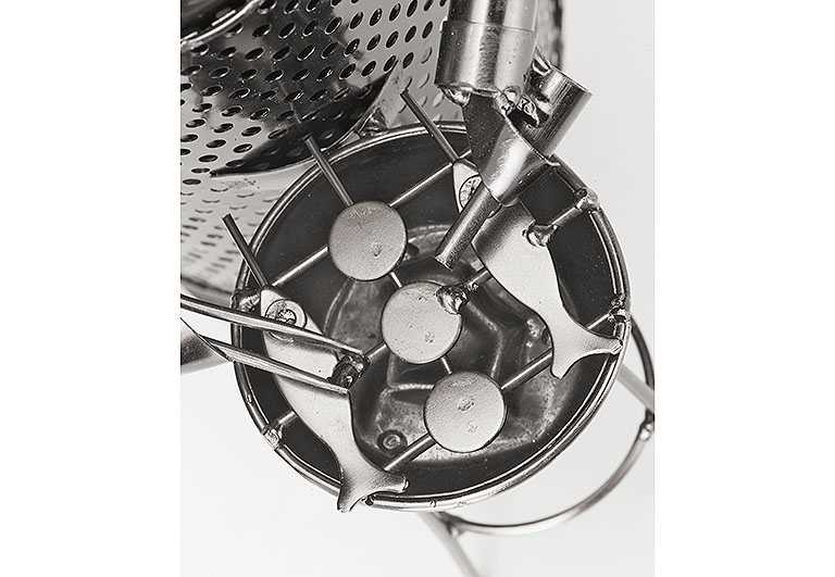 Der Flaschenhalter aus Metall von Kobolo ist detailreich und präzise gearbeitet. In Form eines Grillmeisters ist der metallene Halter für Flaschen aller Art als Geschenk oder für Ihre eigene Dekoration ideal geeignet. Der Innendurchmesser beträgt 8,5 cm. Ohne Deko.Durchmesser 8cm x Höhe 34cm