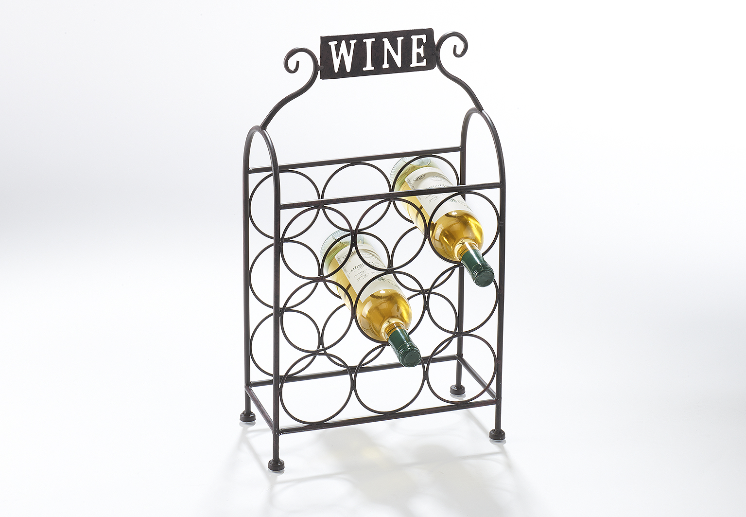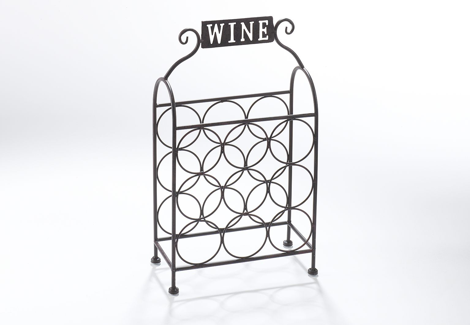 Raffiniertes Weinregal WINE aus Metall antikbraun lackiert von Kobolo. Ein Blickfang, welcher das Zuhause von jedem Weinliebhaber aufwertet. Das Regal bietet Platz für 9 Weinflaschen und bringt diese stilvoll zur Geltung. Länge 32cm x Breite 16cm x Höhe 56cm