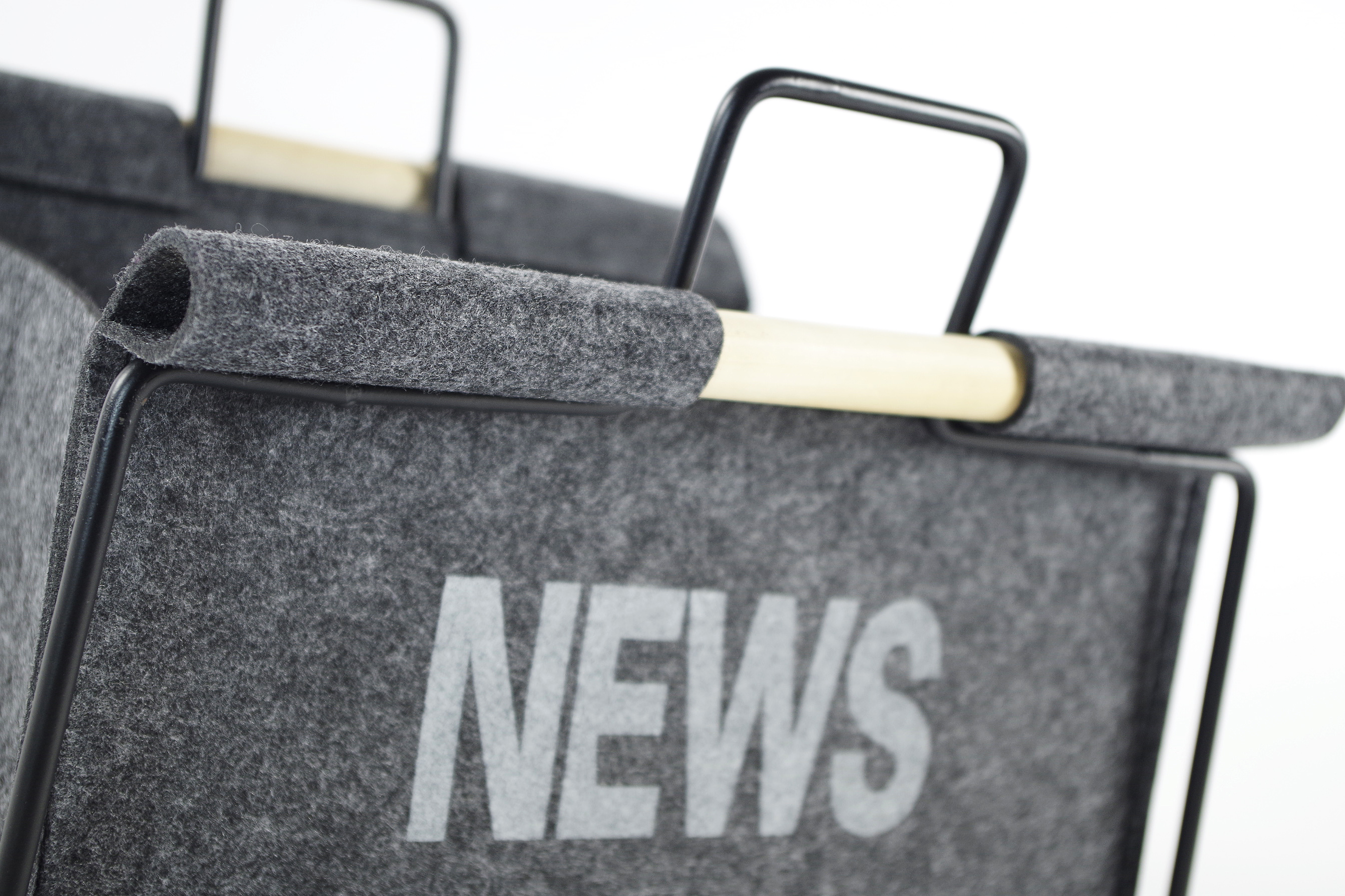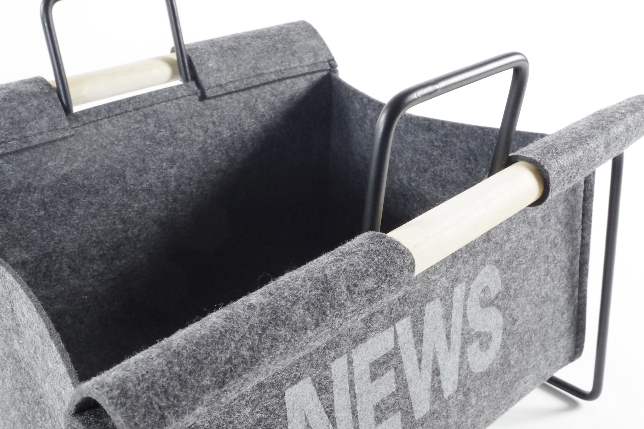 Pfiffiger und praktischer Zeitungsständer aus Filz von Kobolo. Der raffinierte Zeitungssammler eignet sich hervorragend für die Aufbewahrung Ihrer Zeitschriften. Schafft Ordnung und verleiht Ihrer Wohnung ein ganz besonderes Ambiente. Länge 37cm x Breite 31cm x Höhe 22cm